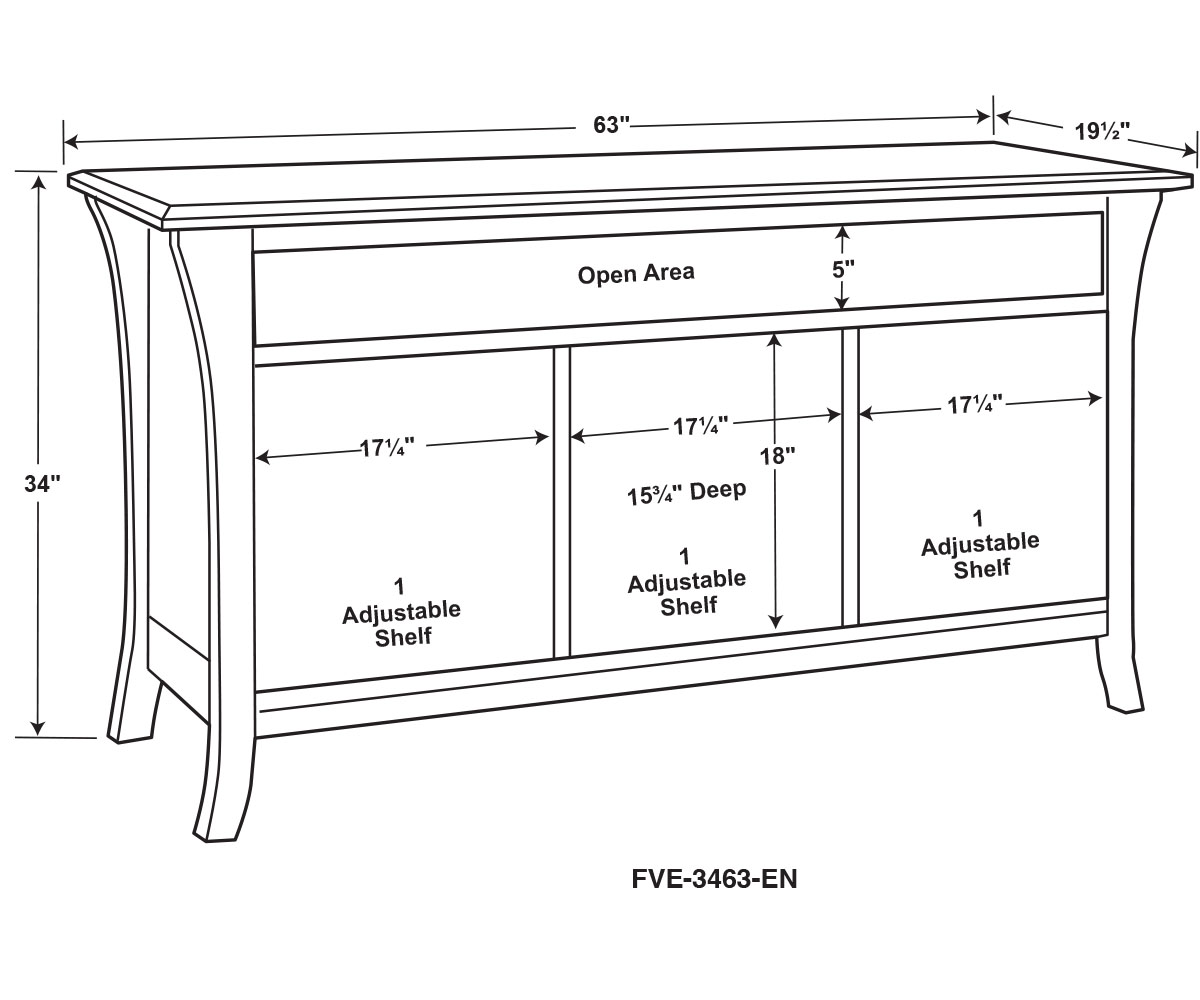 Dimensions: 63″W x 19½”D x 34″H