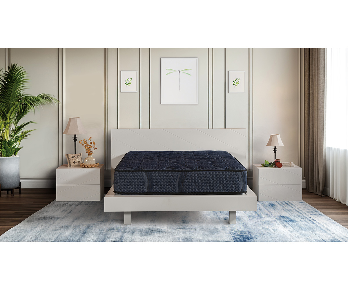 Sleep on the Siesta, made from 8″ fabric encased coil topped with a 1″ Serene® foam comfort layer and 1″ of quilting.