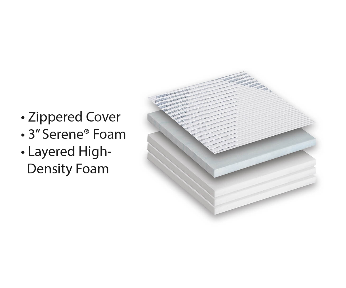 • Comfort layer: 3″ Serene® Foam